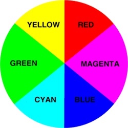 The 3 Primary colours in digital imagery are Red, Green and Blue. RGB. Not the primary colours as we know them to be, Red, Yellow and Blue. This is because Red, Green and Blue are the colours found in the human eyes colour photoreceptors.