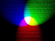 If you shine a Red torch slightly overlapping a Green torch, then slightly overlapping a Blue torch, shining 3 equal parts of the primary colours will create white colour. The photography below shows this.