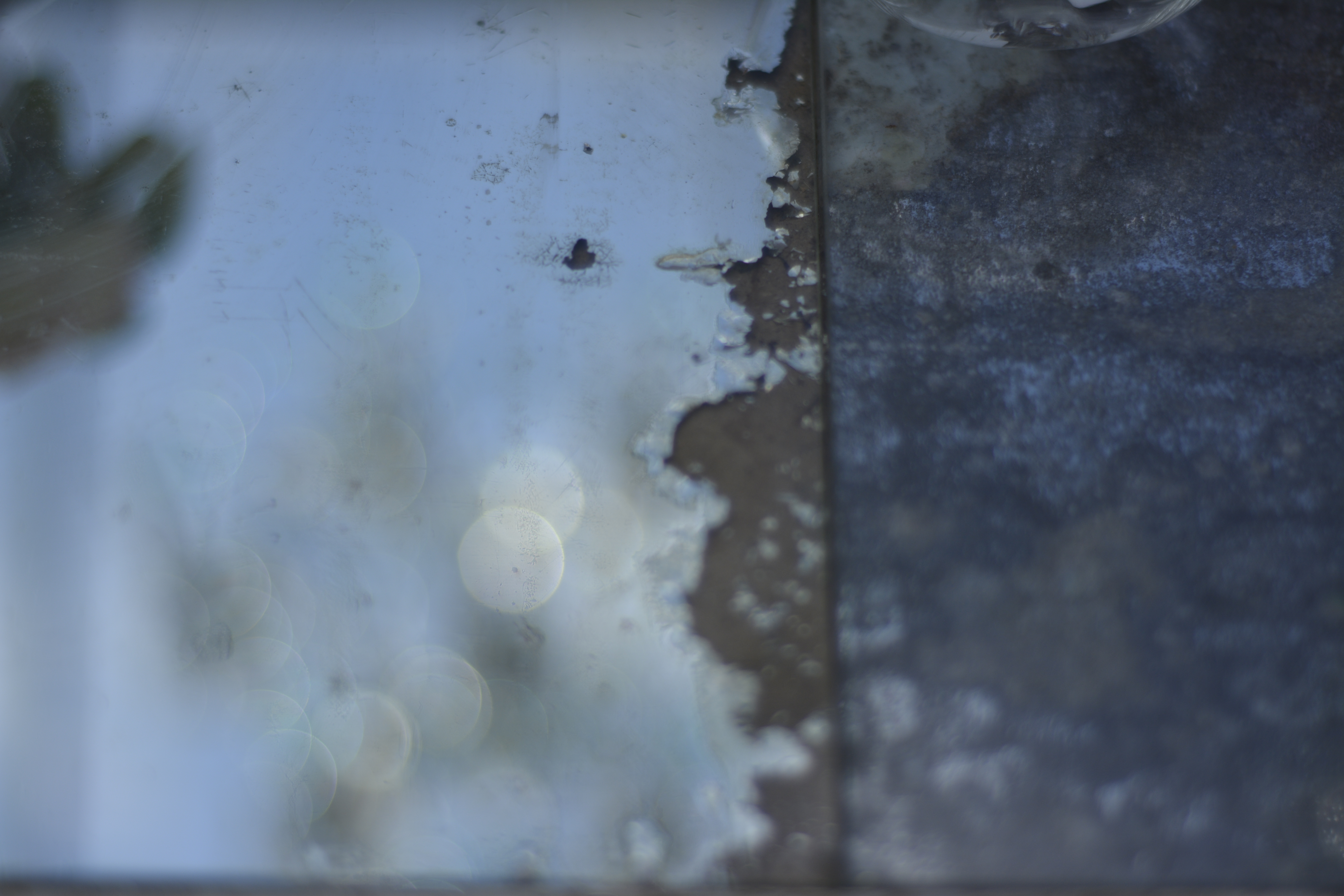 Below are some close ups of an old mirrored table. I like that I have focused on the decaying mirror and therefore captured some small points of Bokeh in the reflection.
