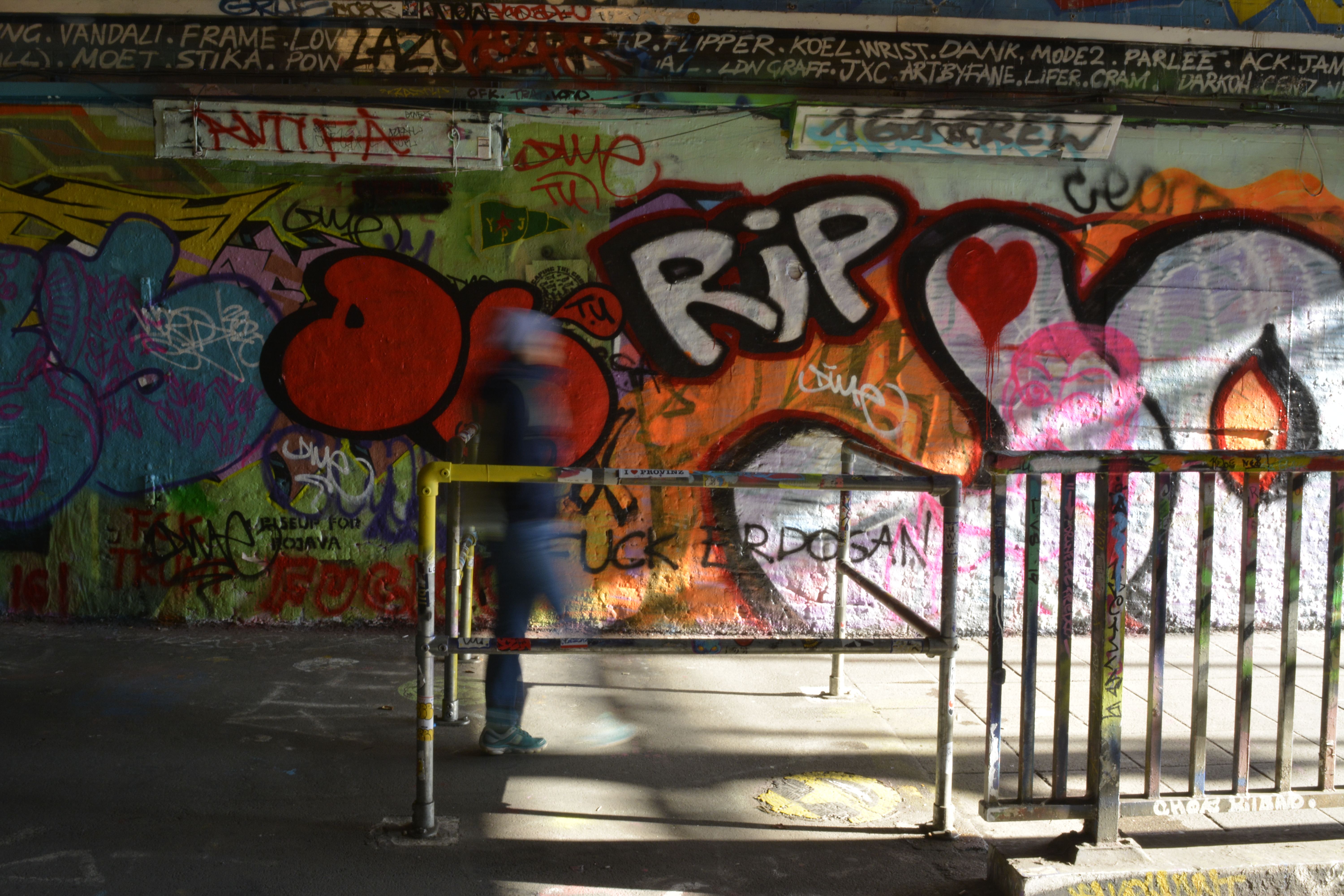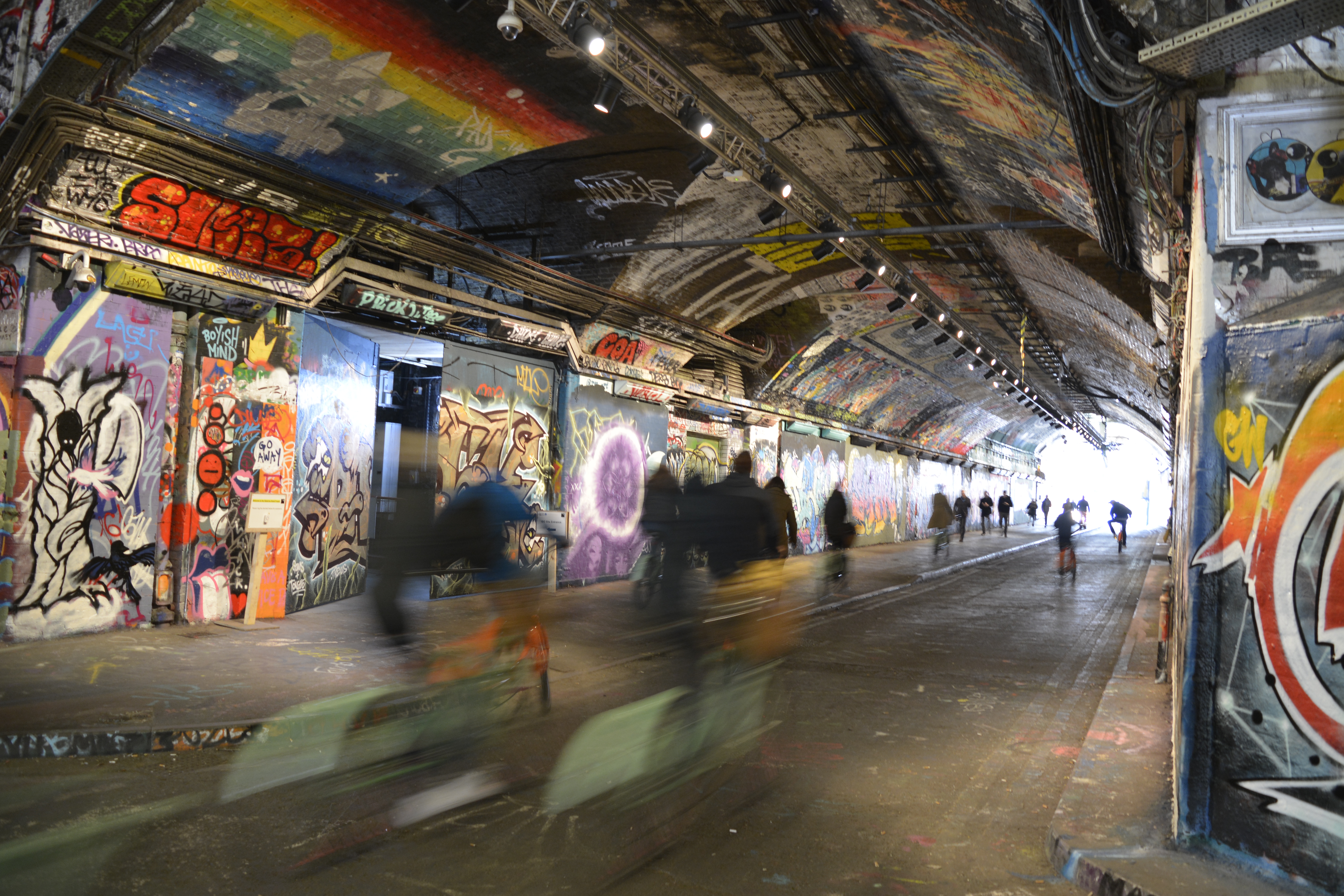 Street art and graffiti have always interested me. I love the colours and the freedom of expression that often comes with graffiti. Leak Street Arches is a great place to go and see the ever changing canvas of art. Thinking about the brief, People in the Environment, looking at people coming especially to see or work on the environment. But also how people walk through the arches to get to work and pass the beautiful art work all around.