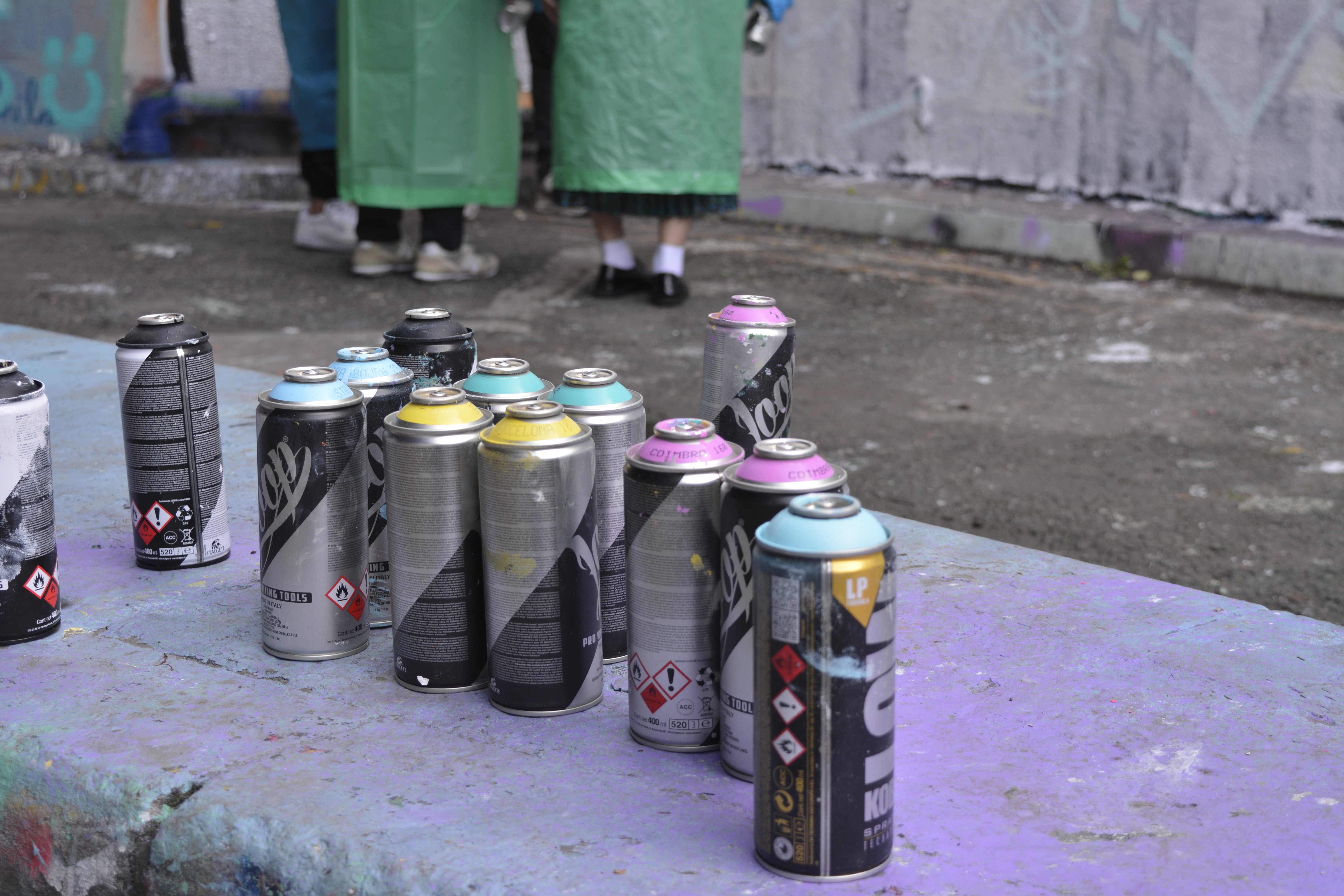 Gained a little confidence being on my own and asked permission to take photographs of the graffiti artists teaching a group of people.