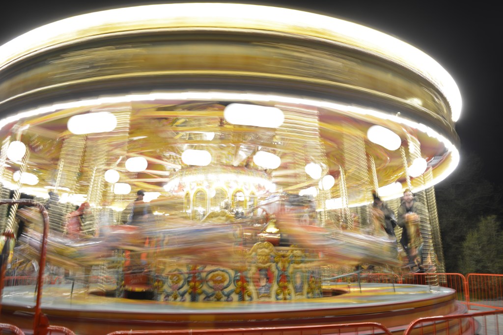 In post production, before lightening my exposure I sharpened the image. I worked on different layers with masks when brightening the exposure, as I had to keep the top right-hand corner from being overexposed when lightened. Working on the motion blur, I lightened the shadows. This defines the blur and you start to see some faces emerge.
