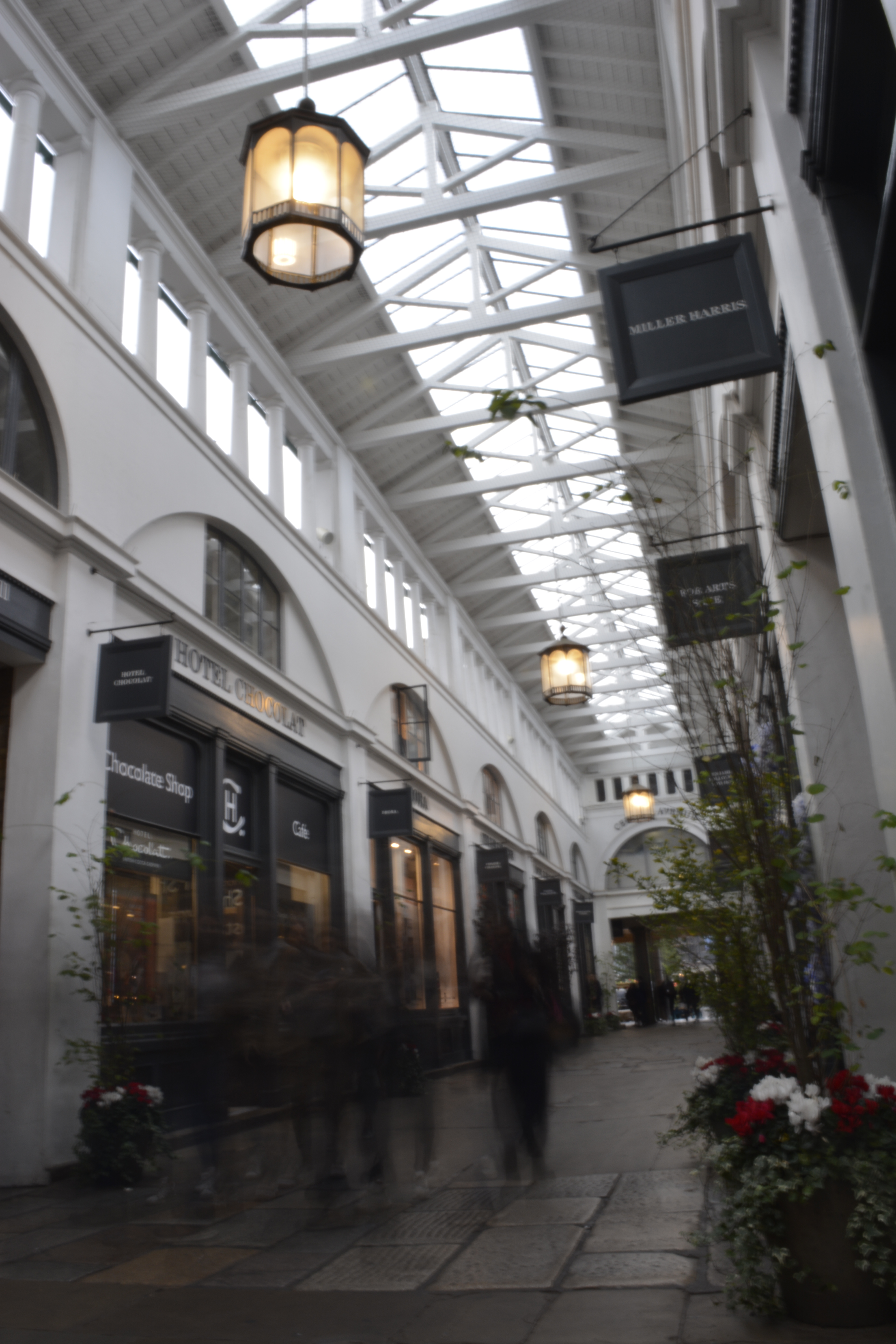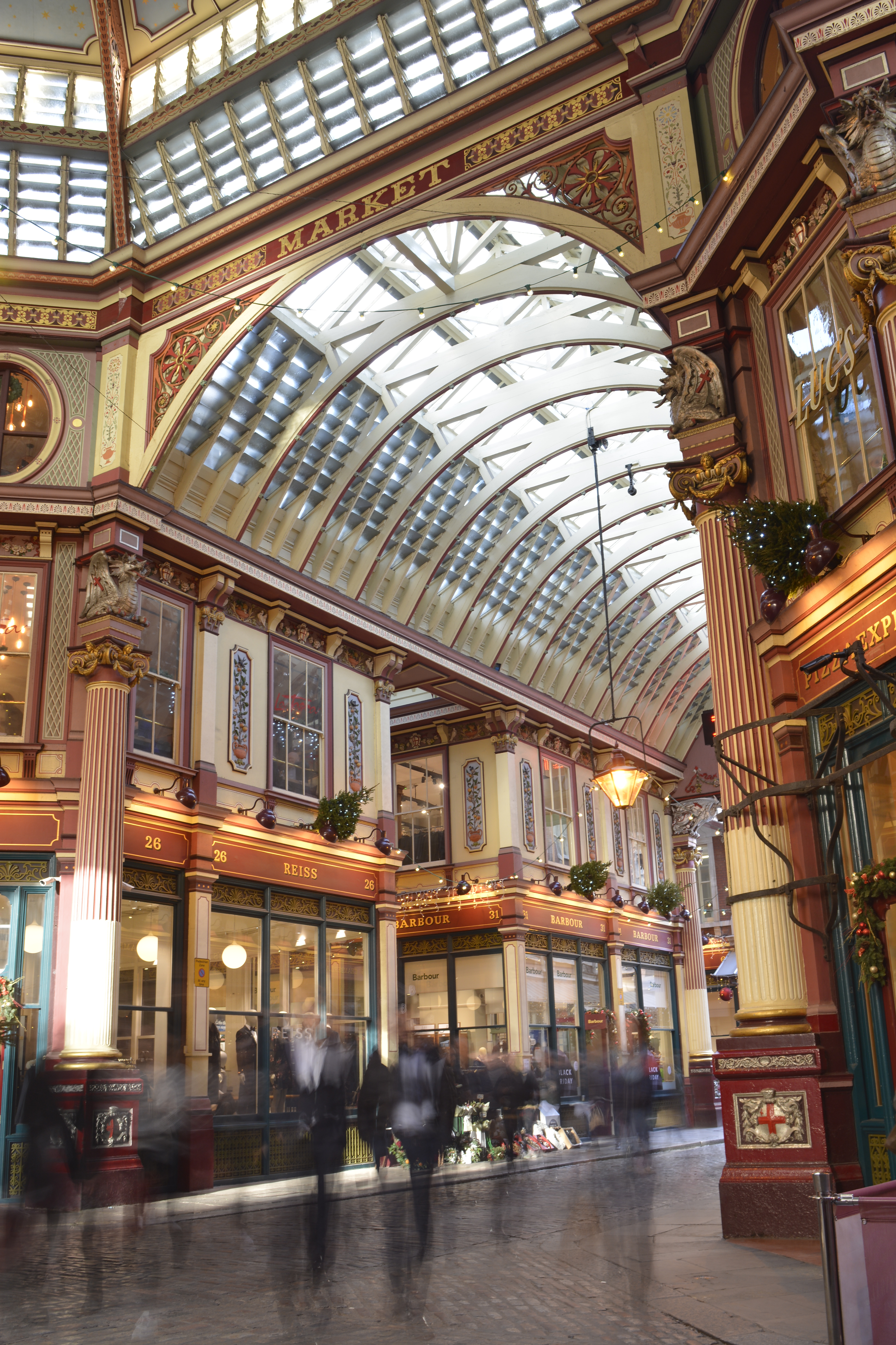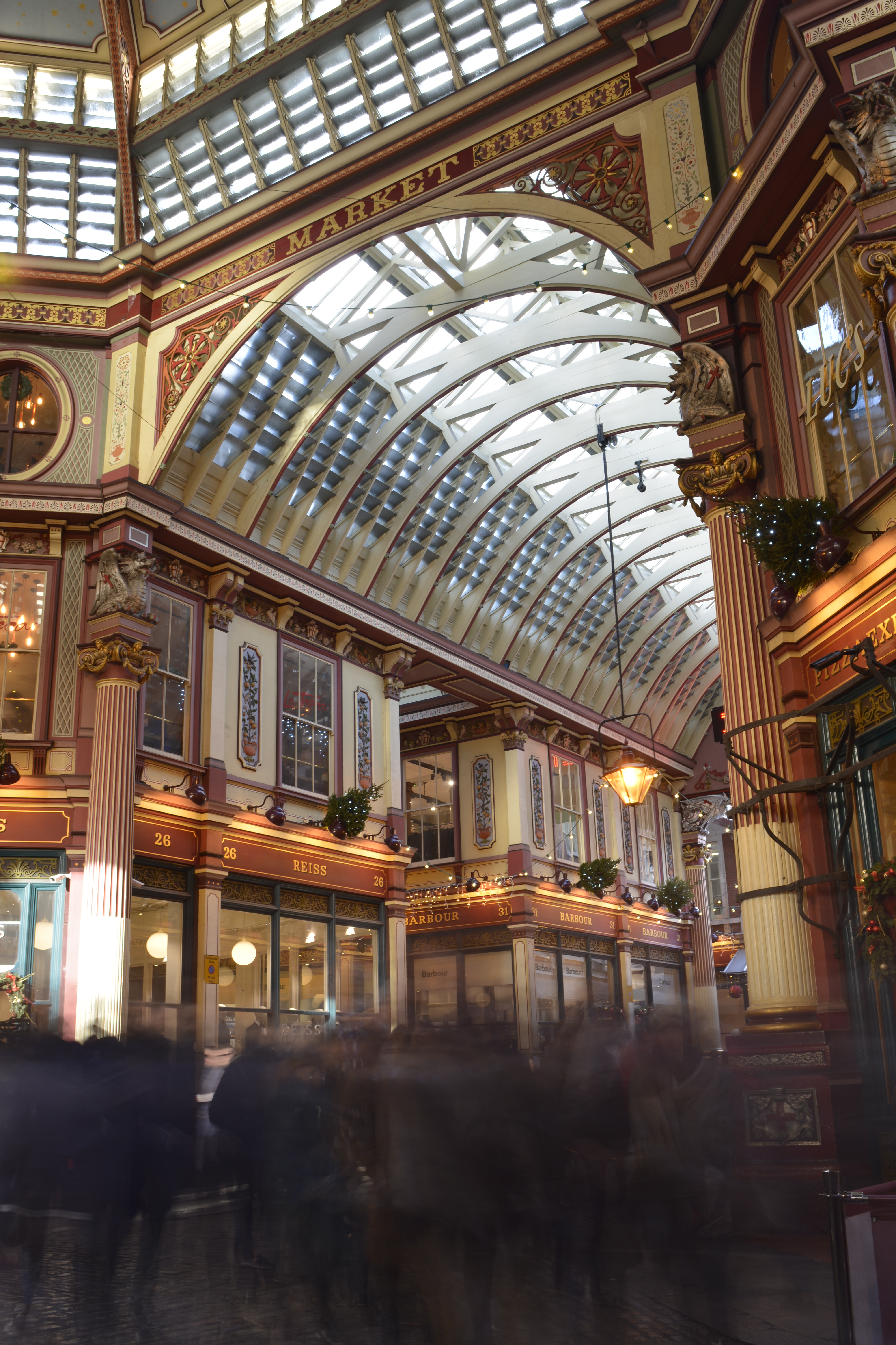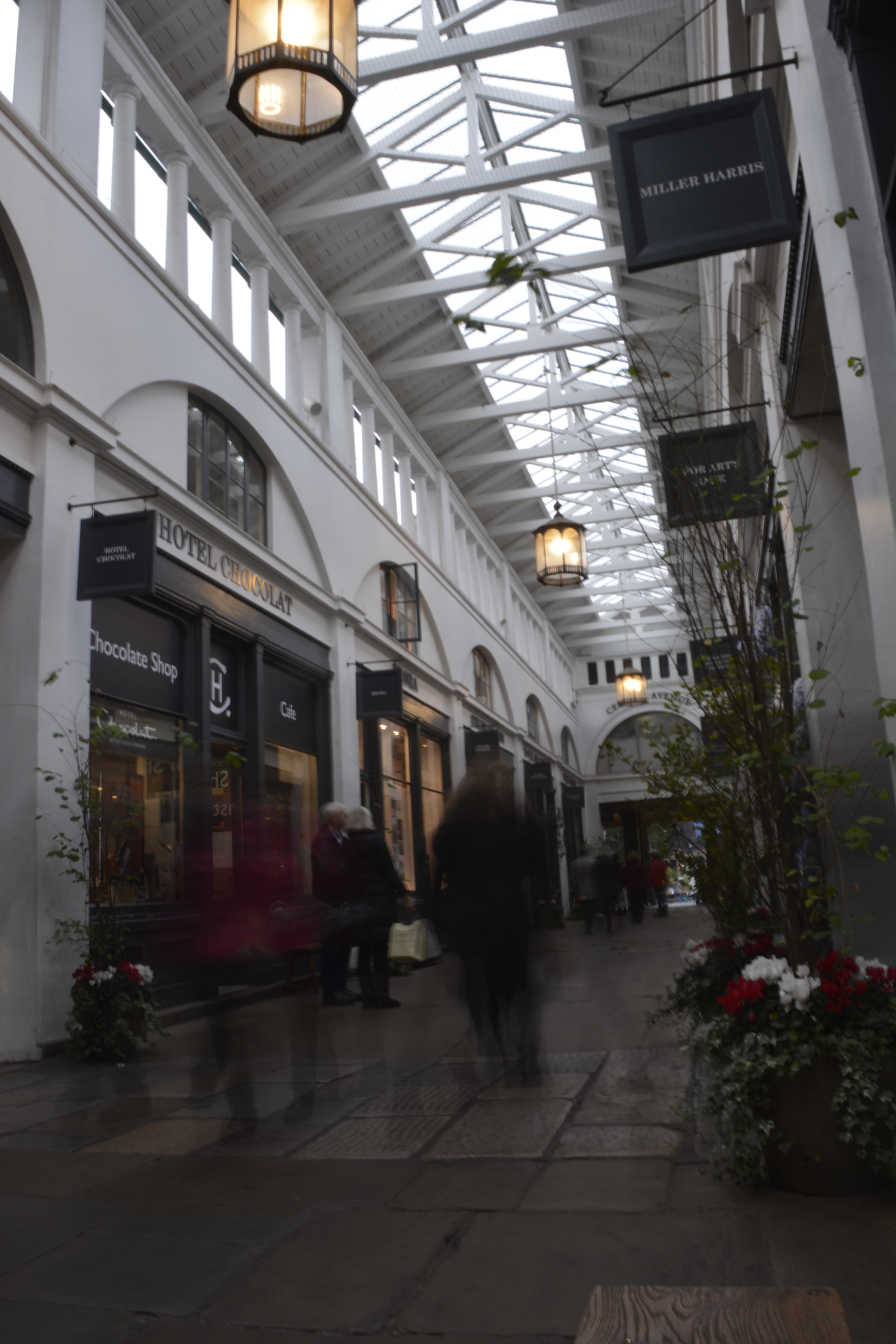 Within Leadenhall Market, even though you can see the light coming through the top of the structure, it still was quite dark inside. Using an aperture of F-11 I managed to use an 8 second shutter speed to capture lots movement flowing through the market hall. I am very pleased with the result.