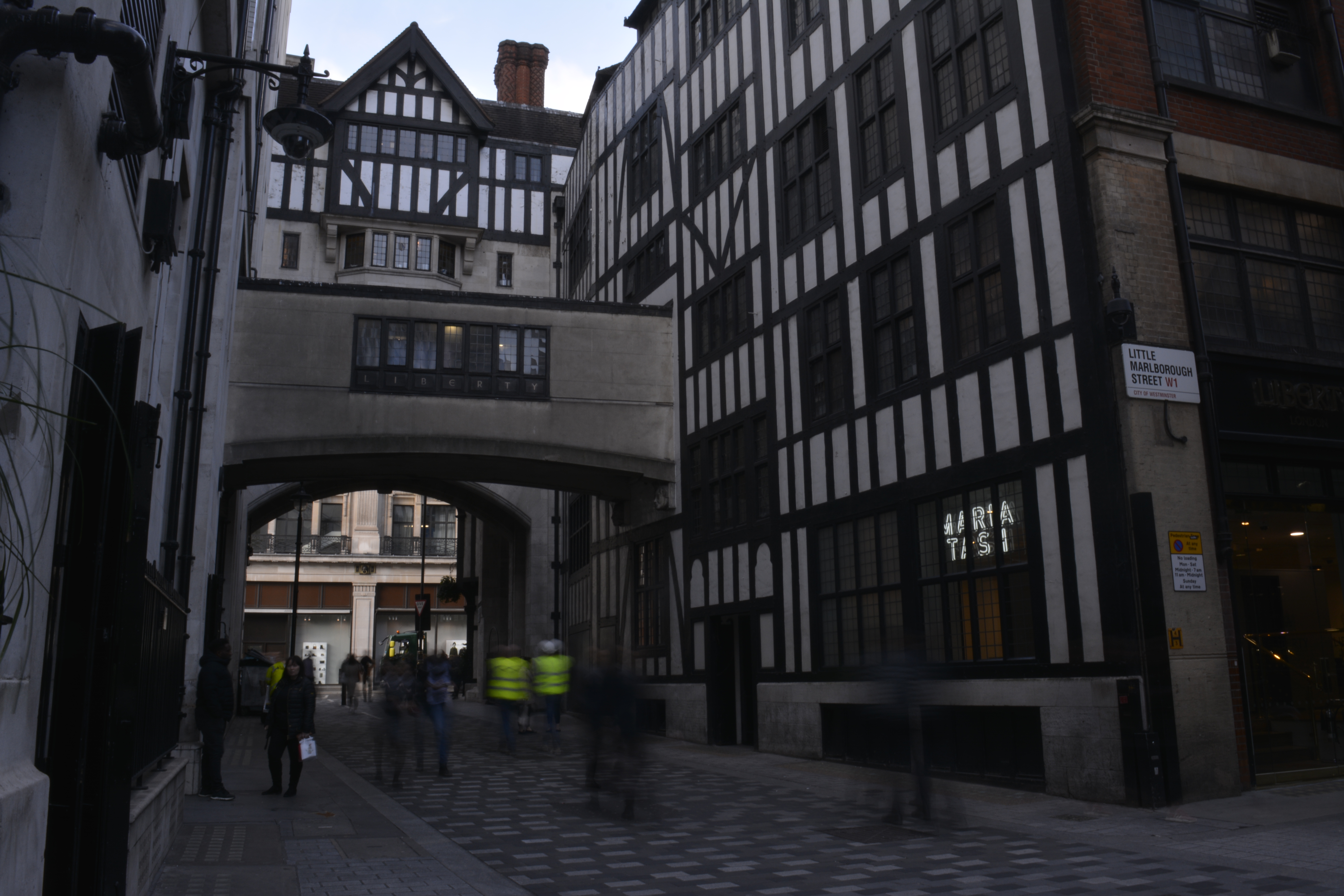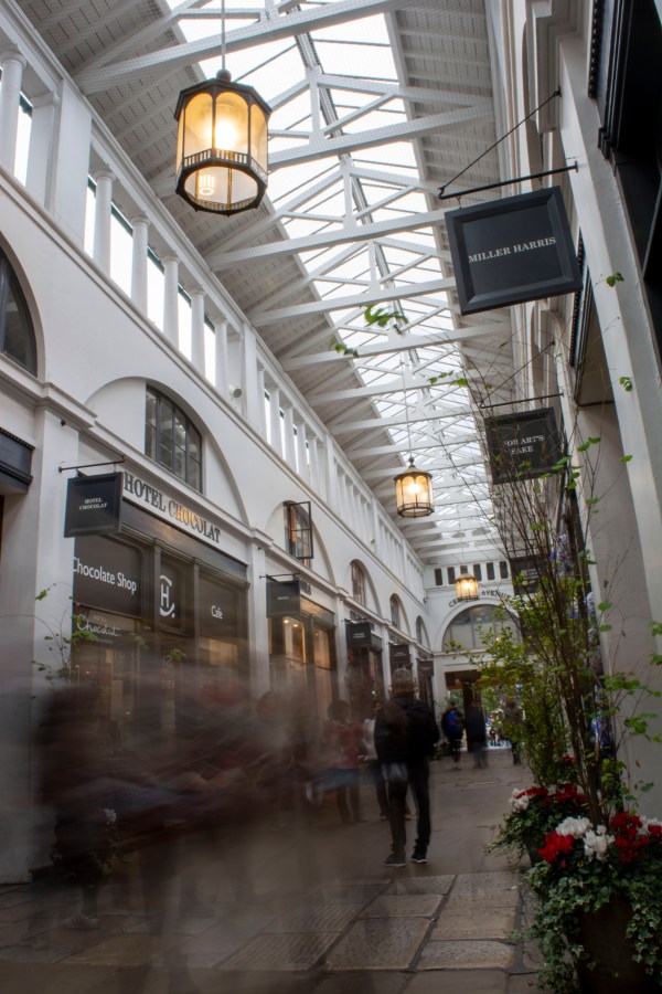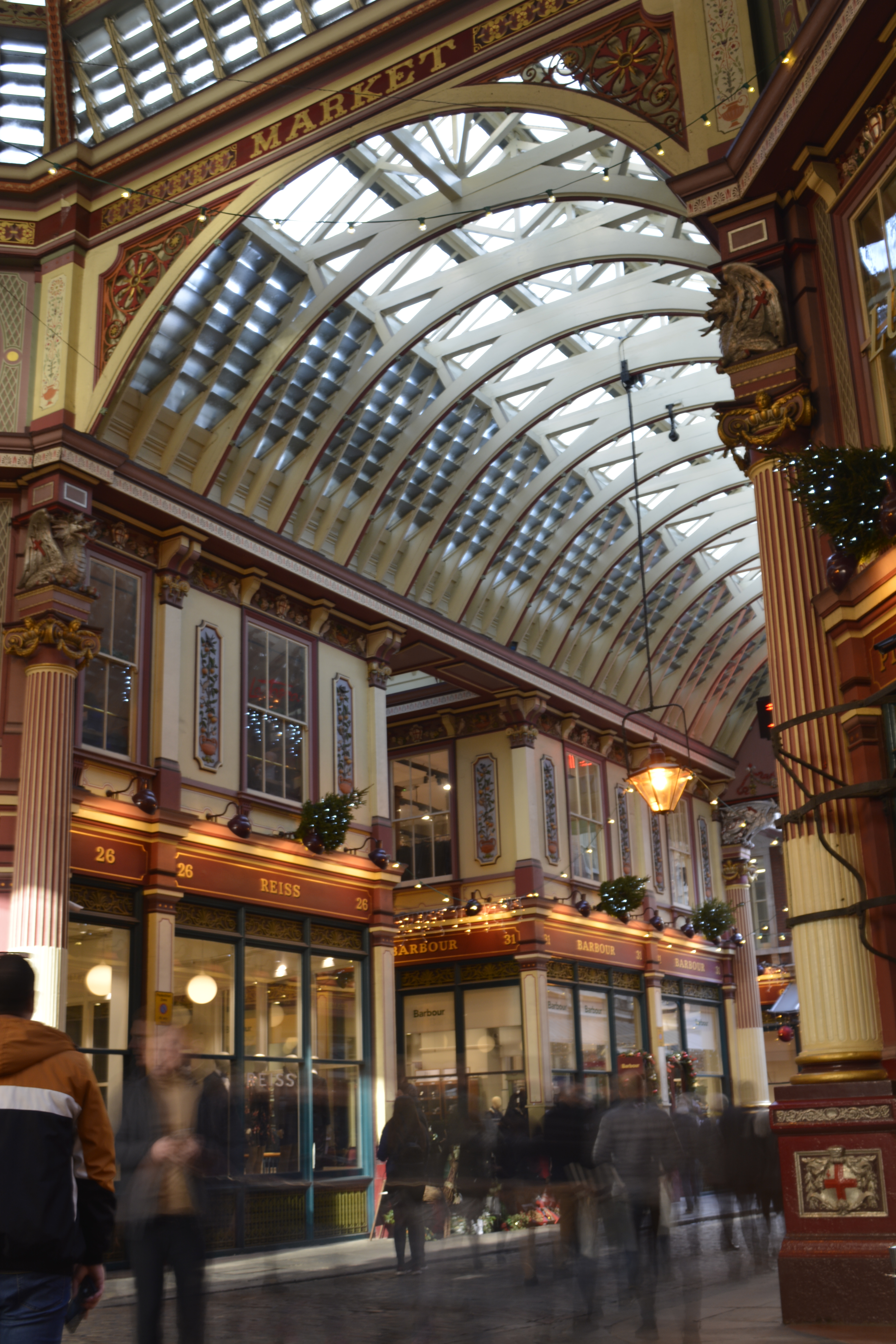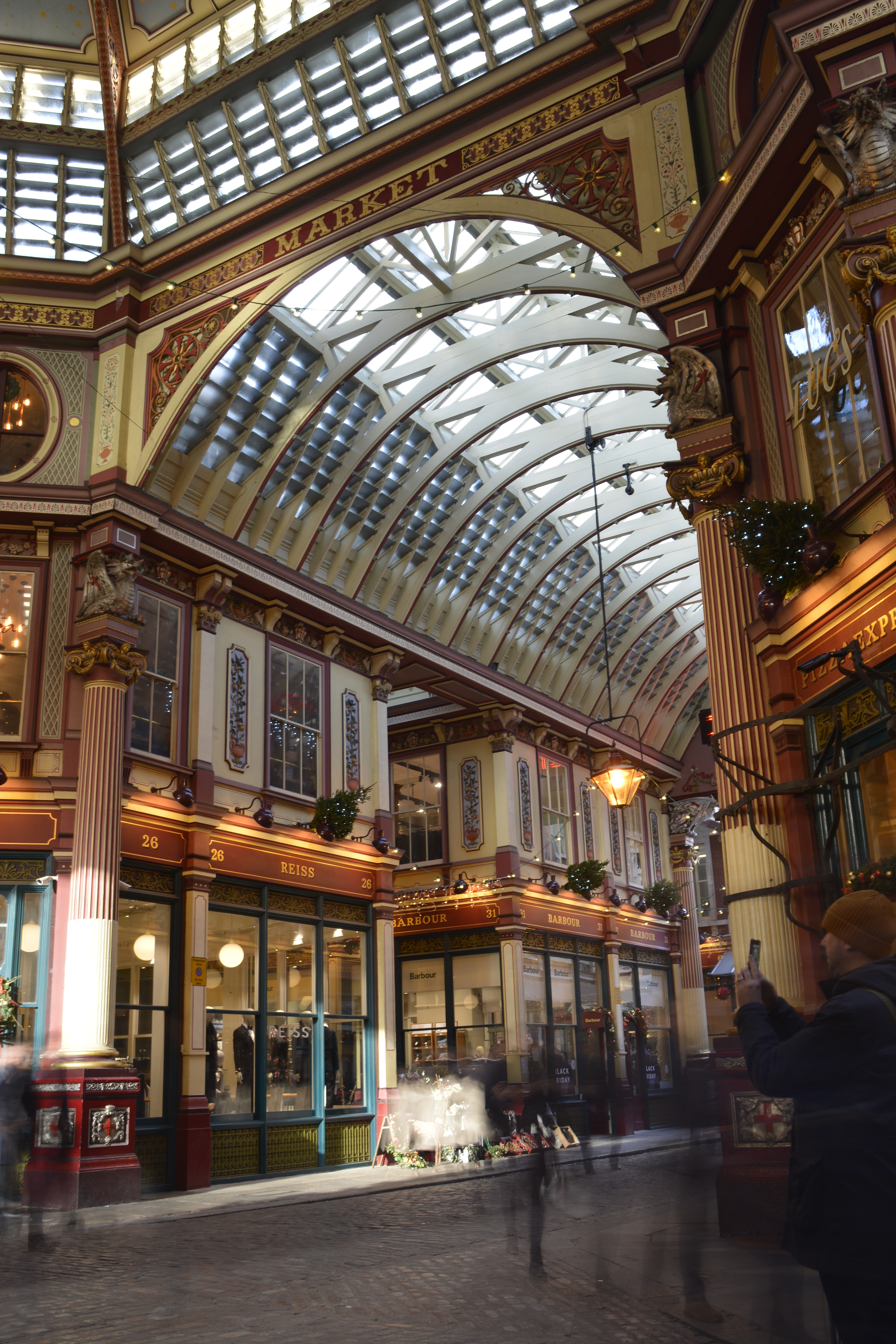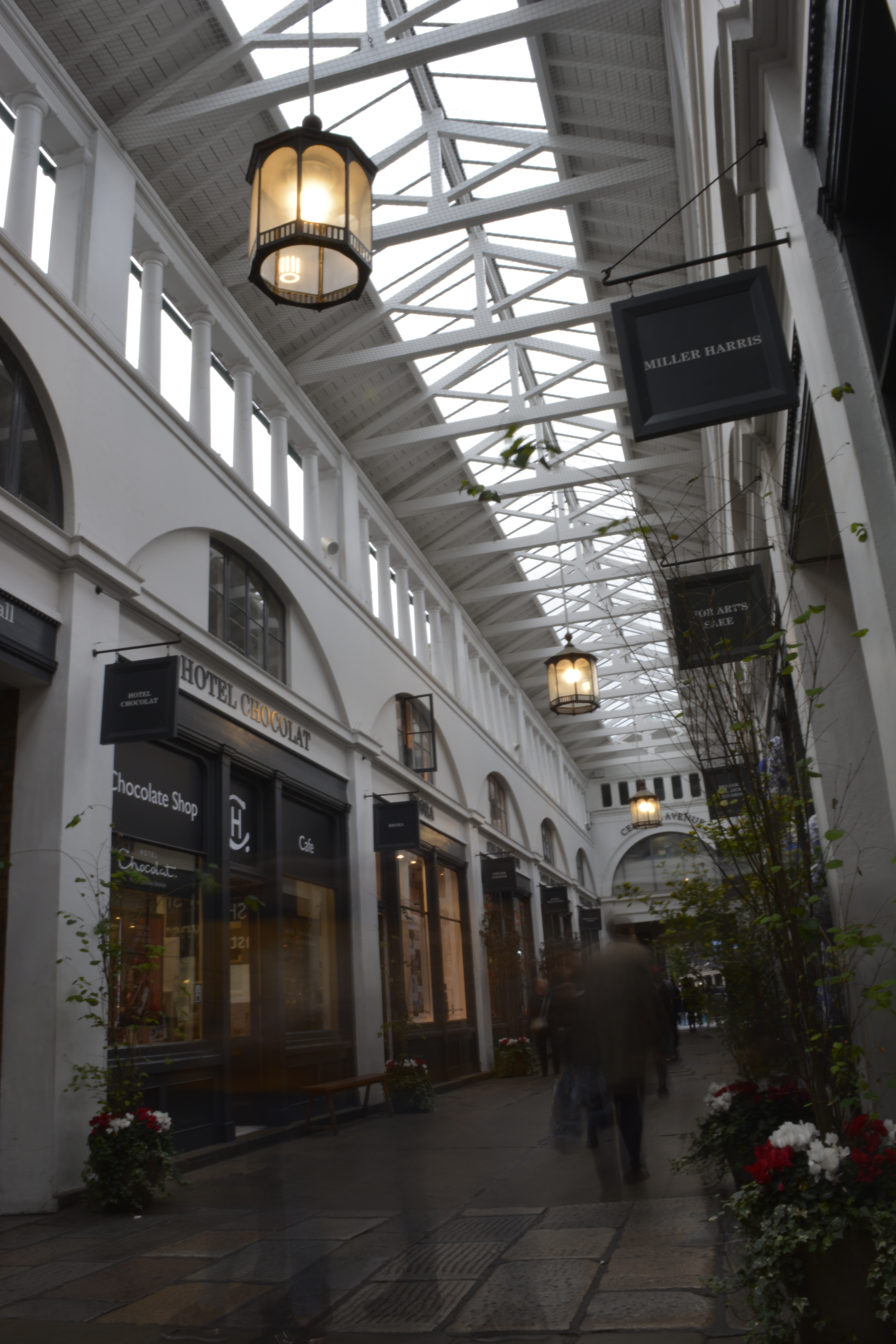 Within Leadenhall Market, even though you can see the light coming through the top of the structure, it still was quite dark inside. Using an aperture of F-11 I managed to use an 8 second shutter speed to capture lots movement flowing through the market hall. I am very pleased with the result.