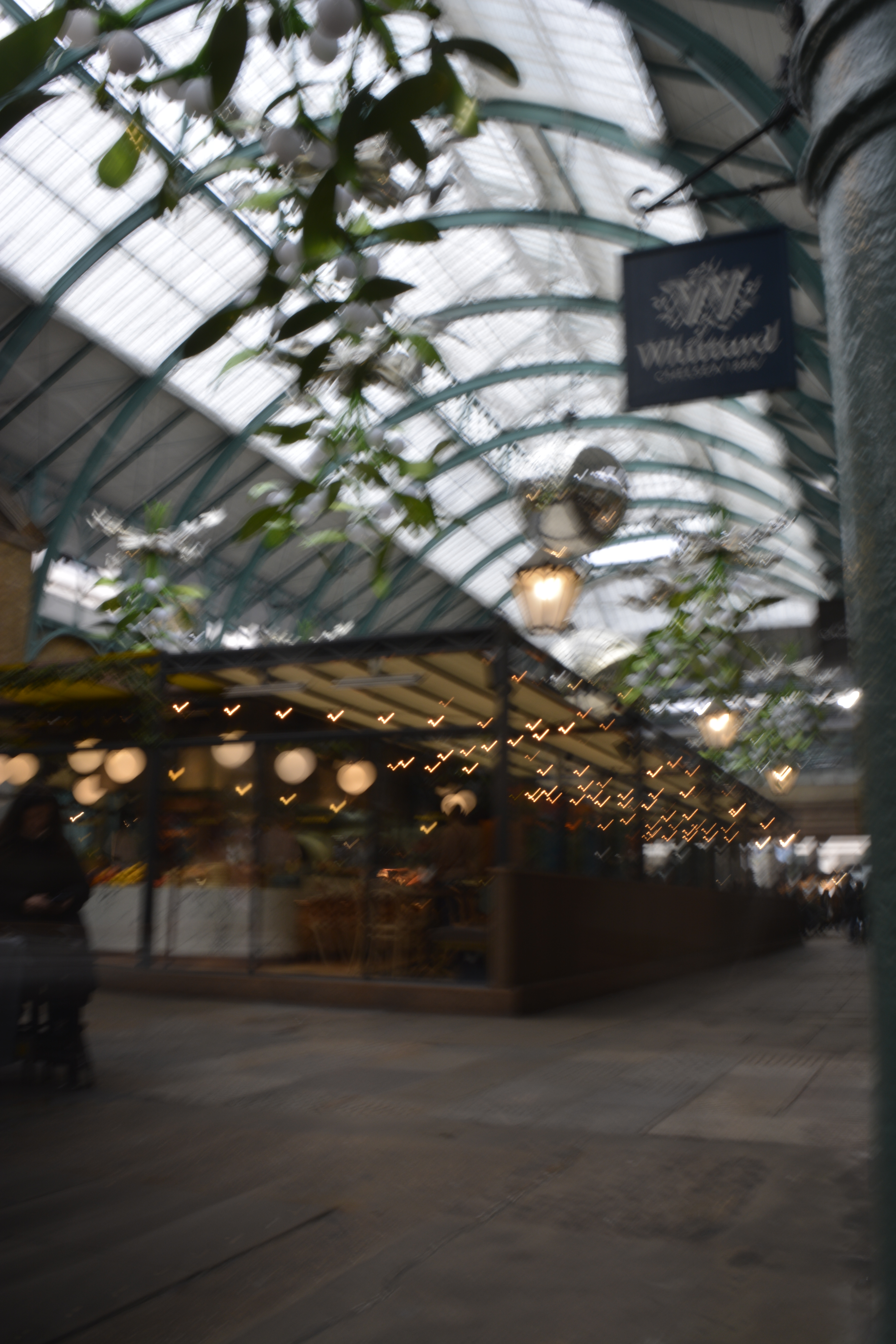 This photograph was not my initial vision that I wanted to try and capture at Covent Garden. Trying to use a tripod in the market stall areas was not allowed and as I was using longer shutter speeds I needed to stabilise the camera somehow. I was not wanting to give up but really struggling to find a solution.