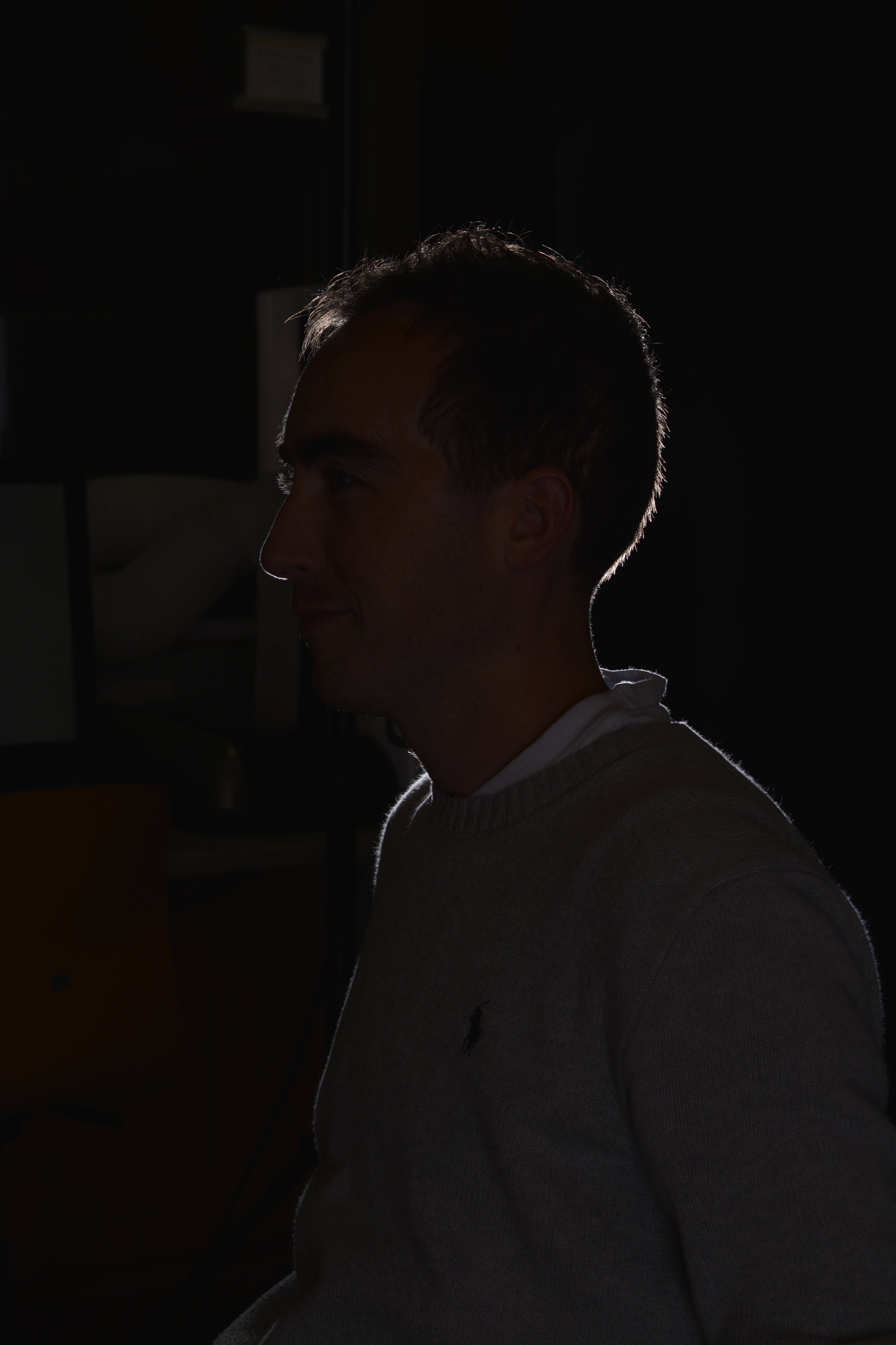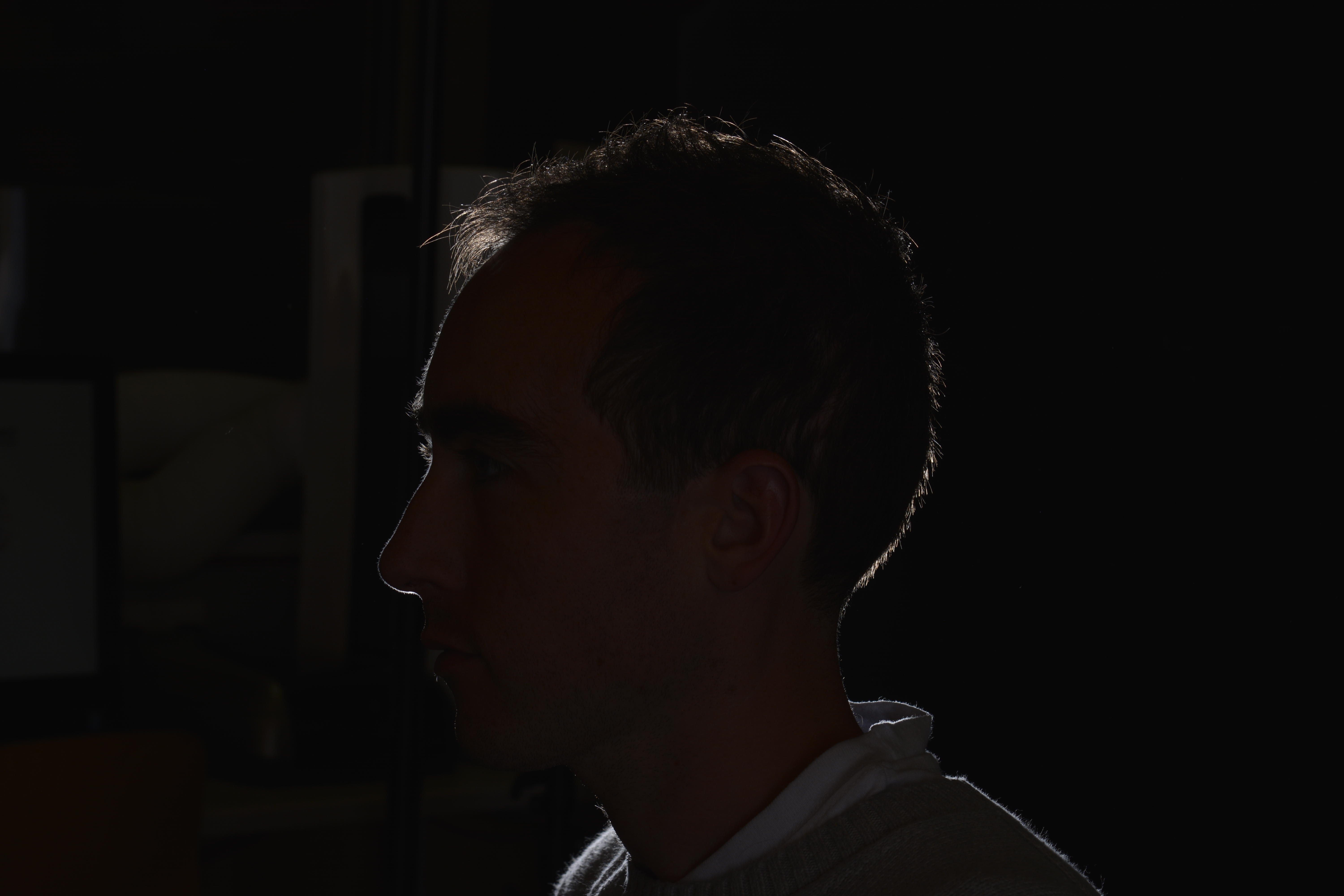 Keeping the model facing the same direction, I moved myself to the right. So from split lighting, I was trying to create some back or rim lighting. Back or Rim lighting is where the subject is lit from behind, this creates a halo effect around the subject and leaves it in silhouette.