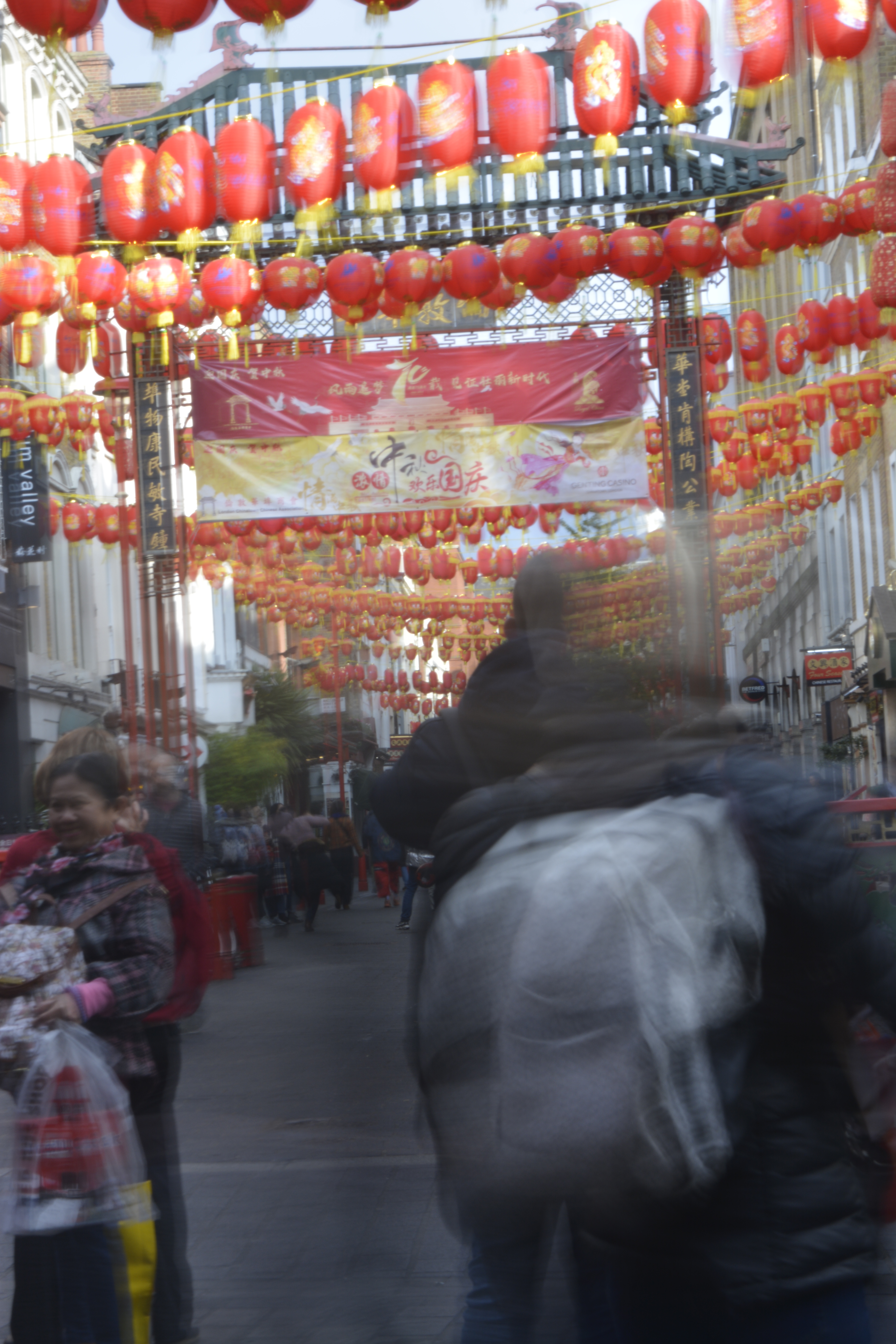 Walking through Chinatown I thought that the lanterns would make for a great picture. However as they all independently move I was unable to get a crisp background shot with moving people. It all looks slightly out of focus.