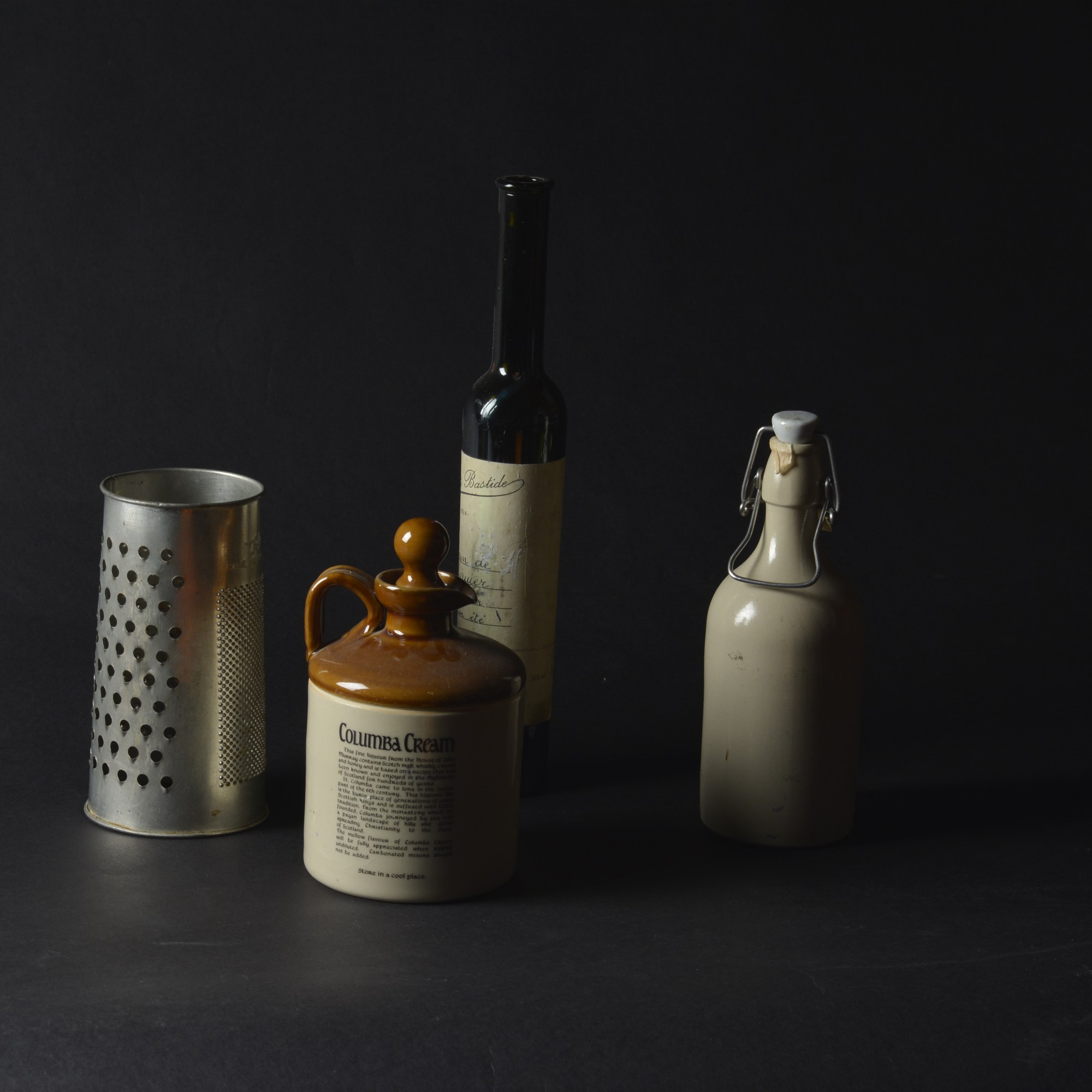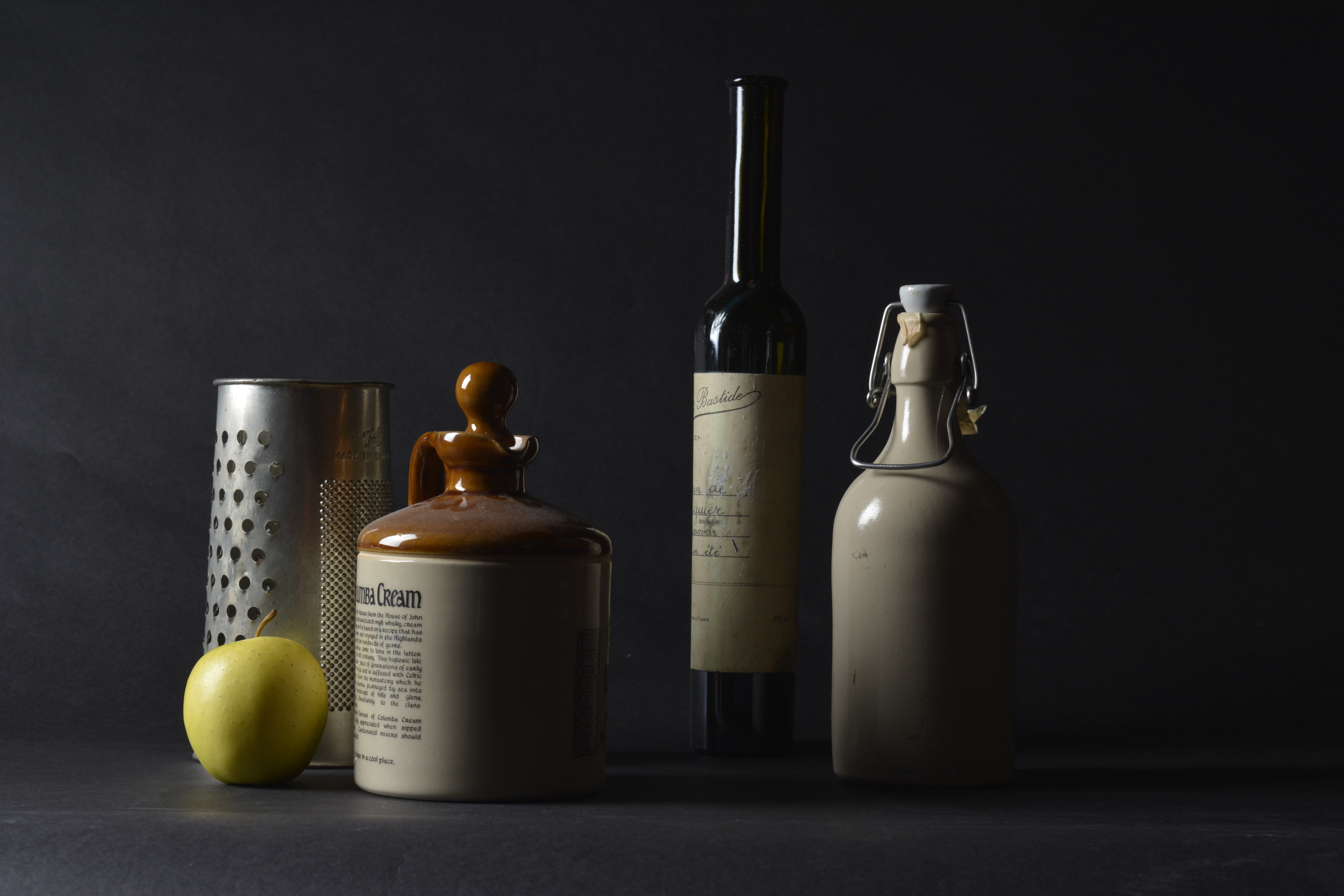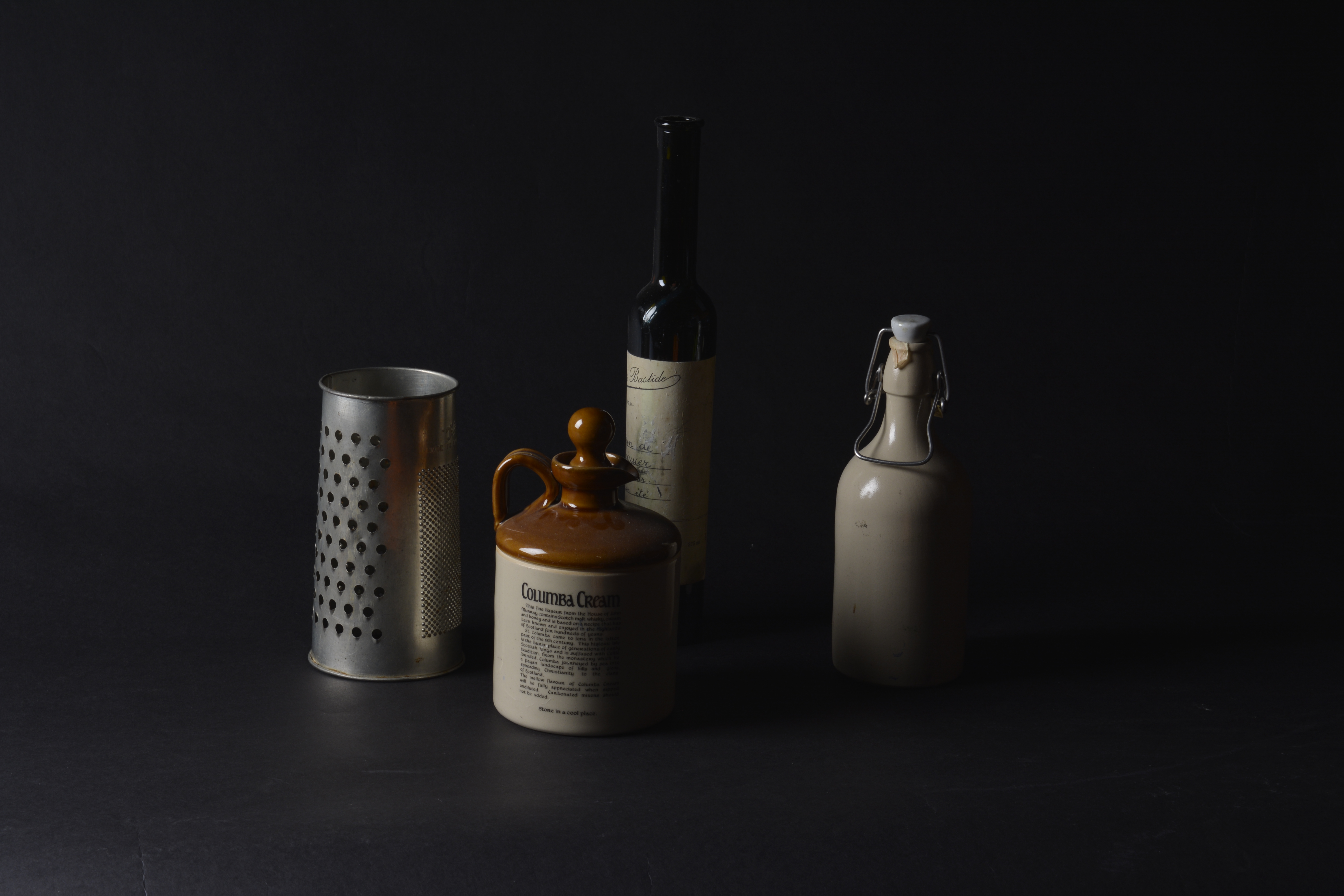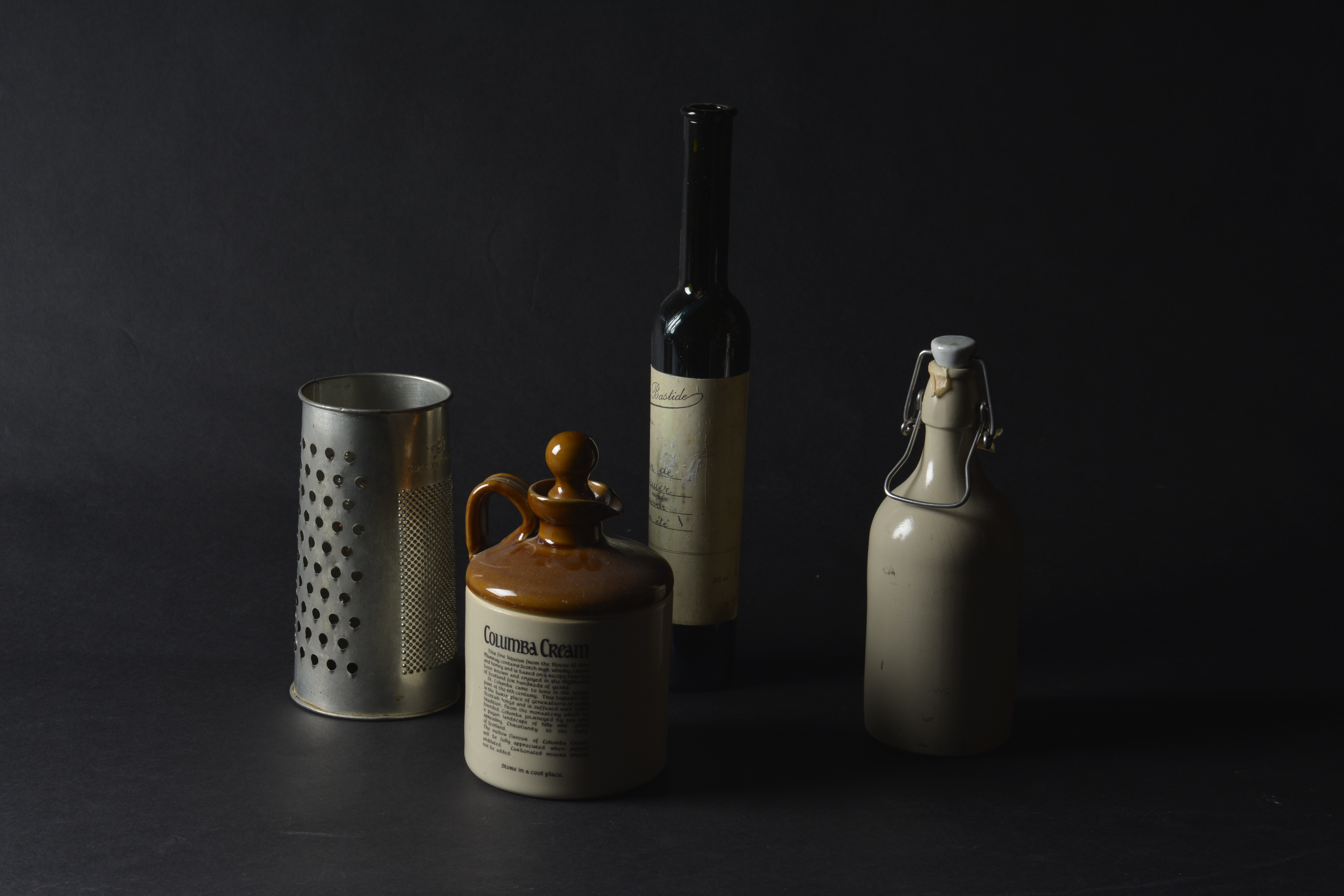 I quite like to photograph old metal and different textures. I seperated the grater from the bottles.