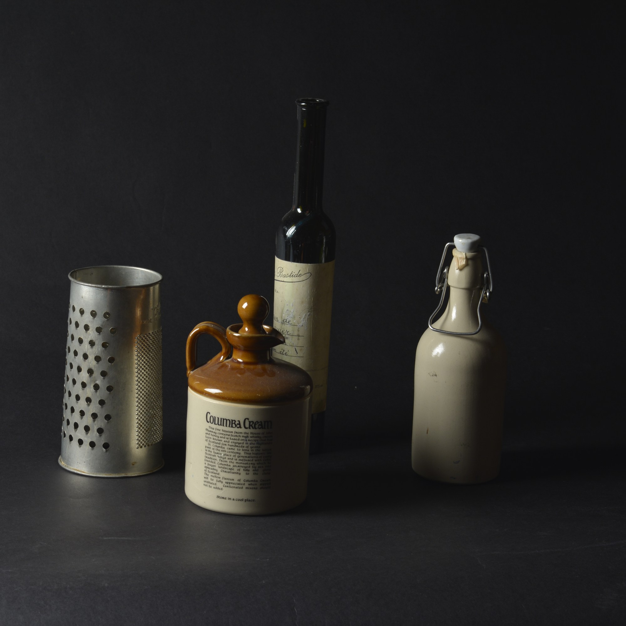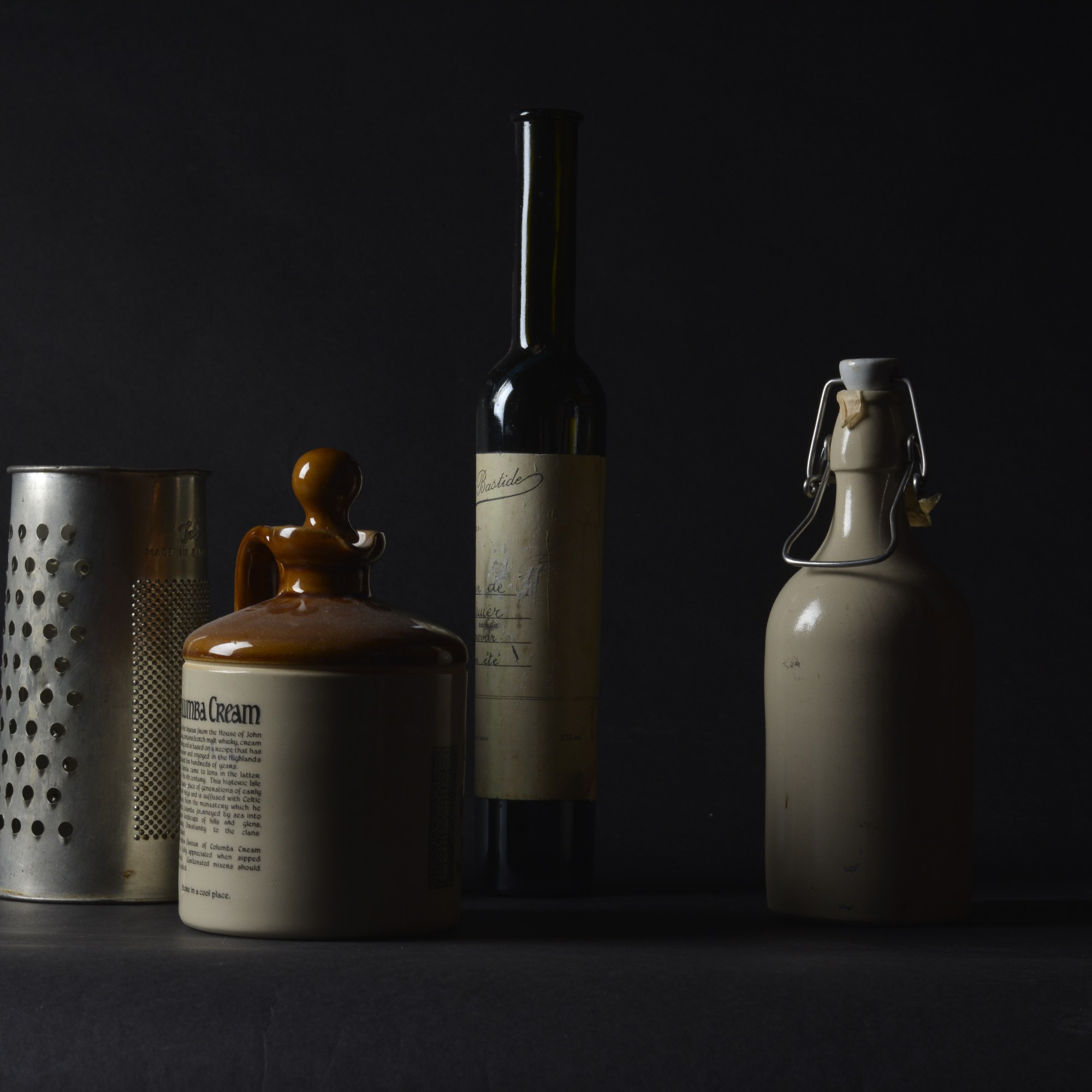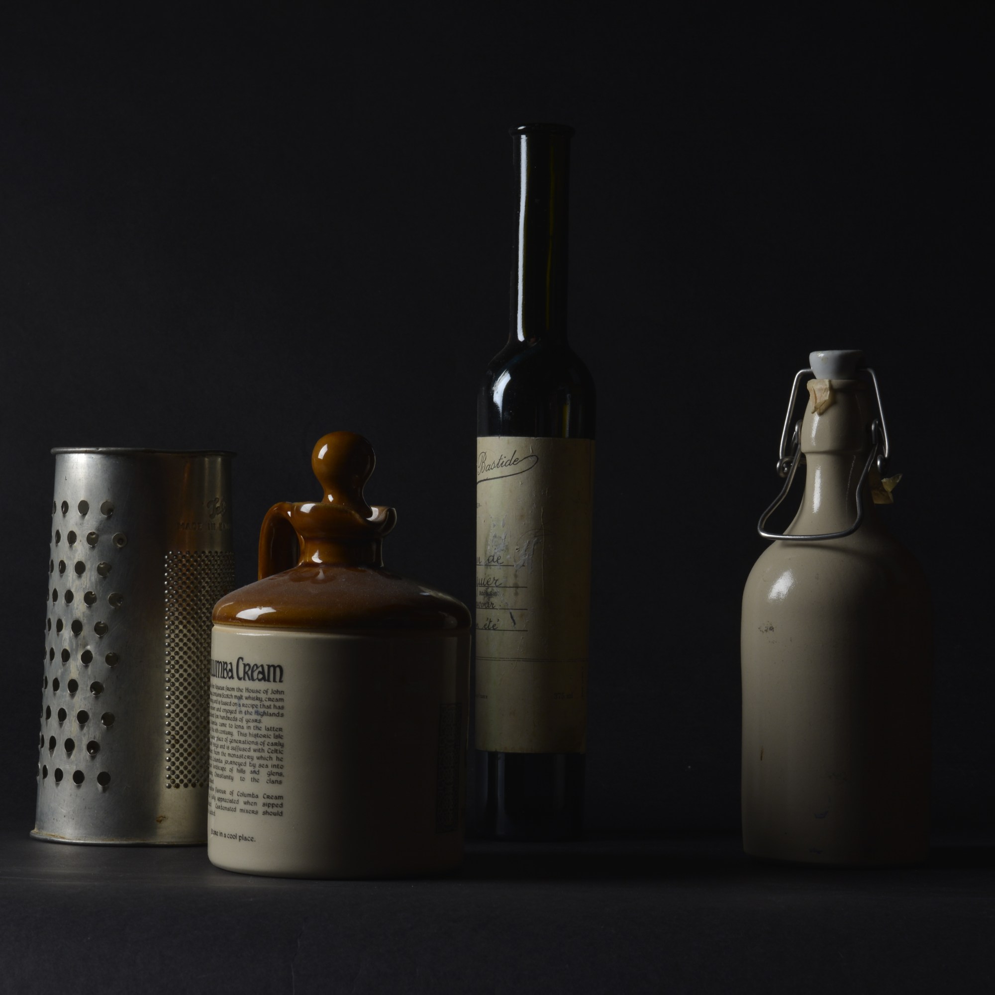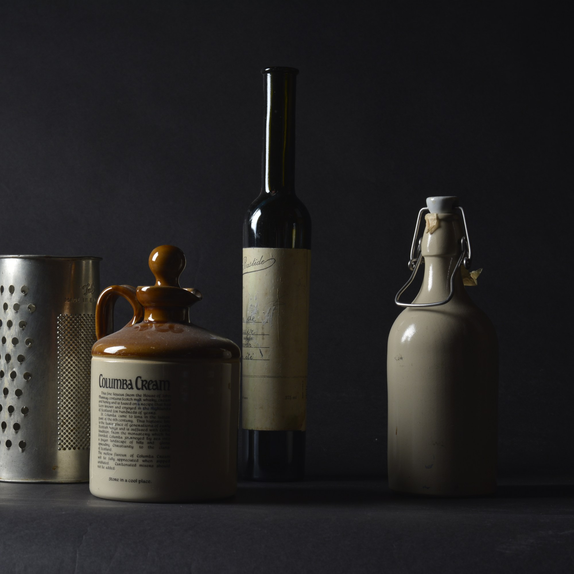 I quite like to photograph old metal and different textures. I seperated the grater from the bottles.