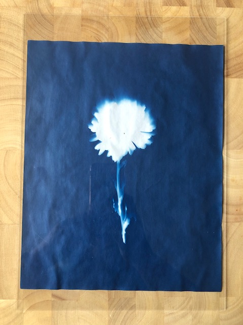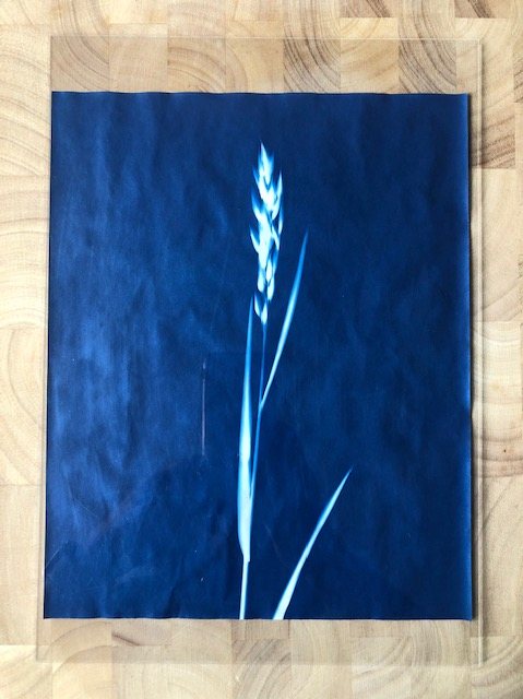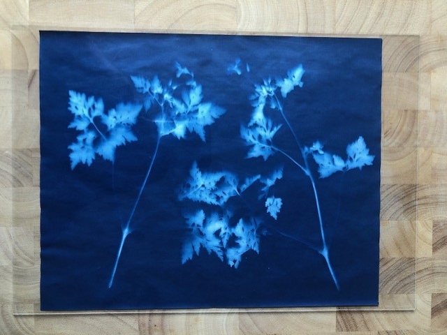 Laying objects on the paper is not the only way to create Cyanotype images, you can transfer your own images. Converting your chosen image into a negative in post production then print onto some acetate. When printing, be sure to print on the slightly misty side not the shiny side. If not, the ink will not dry and the result in smudging. Then, place the printed acetate on top of the Cyanotype paper, weigh down with glass and the expose.