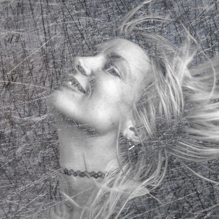 Below, I have taken one of my portraits (right), turned it into Black and White and then applied a scratched metal overlay (left).